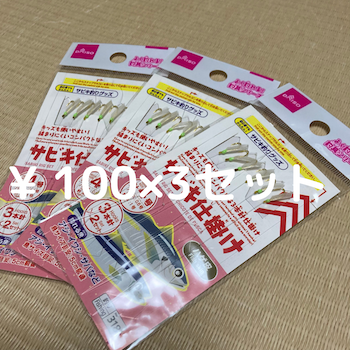 - 仕掛け 予備も含めて(釣り針のセット)¥100 を 3つ くらい、サビキなら4号〜5号