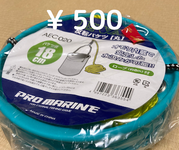 - 水汲みバケツ 釣具屋で¥500