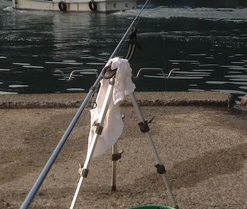 地面に 釣り竿 を置いていると、