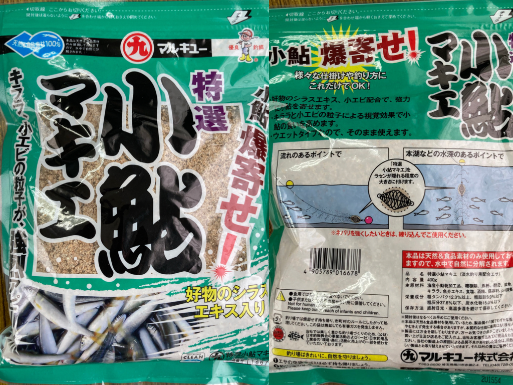 こちらはウェットなタイプで、袋から出してすぐに使えるので便利。「特選小鮎マキエ」です。